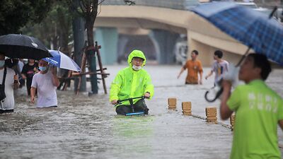 'never seen such heavy rainstorm'. Alibaba, tencent, bytedance and meituan rush to support a courier wades through a waterlogged road in zhengzhou, capital of central china's henan province on july 20, 2021. Chinese authorities increased the emergency status to level ii in the central province on wednesday. Since july 17, 2021, henan province has been affected by large amounts of rain. China's 'iphone city' relocates 100,000 after floods leave 12 dead.
